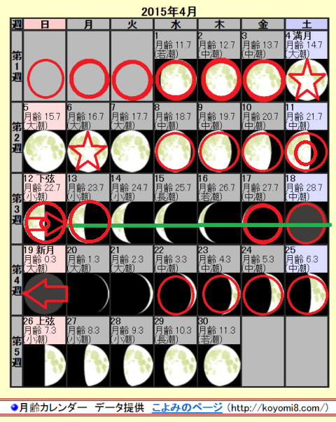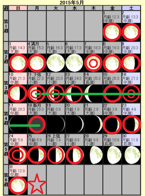 2015年5月の自然現象を、「月による“中潮”の切れ目」を重視して観察します。