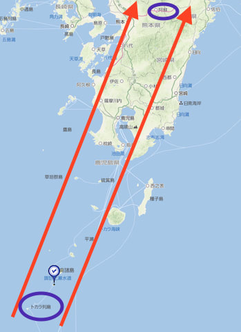 屋久島近海 ⇒ 桜島 ⇒ 霧島山 ⇒ 阿蘇山