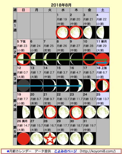 今日から週末の満月に向けて、中間に不安定な「中潮」(潮のバランスが悪い)の連続日が有りますから、注意して静観しましょう。