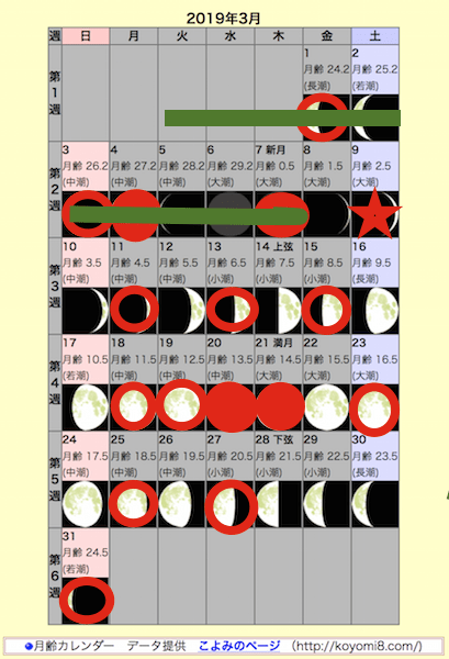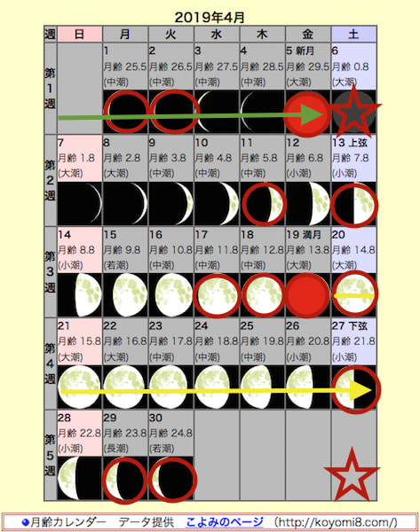 2019年4月の自然現象を、「月による“中潮”の切れ目」を重視して観察します。