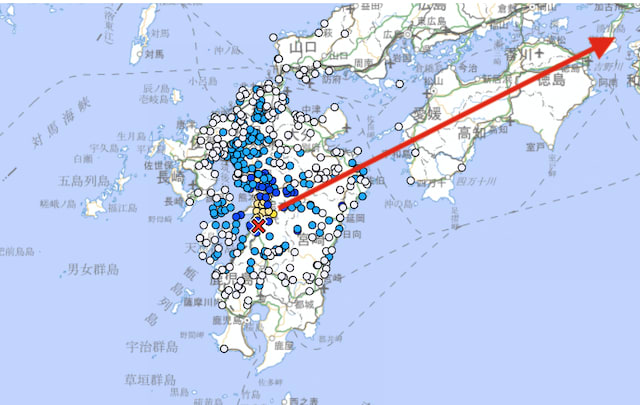 直近の2022年3月16日23時36分ごろにも、宮城県や福島県で最遠日から5日後に震度6強が発生)