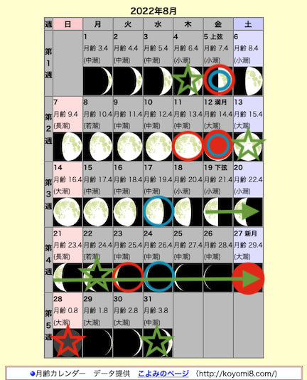 * 月齢カレンダー (http://koyomi.vis.ne.jp/moonage.htm?cmd=20220909120 月齢カレンダー データ引用 http://koyomi8.com/ より)