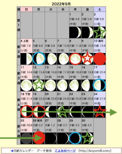 2022年9月の自然現象を、「月による“中潮”の不安定日」を重視して観察します。