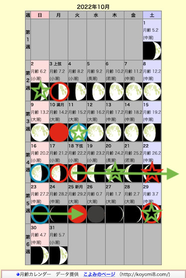 * 月齢カレンダー (http://koyomi.vis.ne.jp/moonage.htm?cmd=20221109120 月齢カレンダー データ引用 http://koyomi8.com/ より)