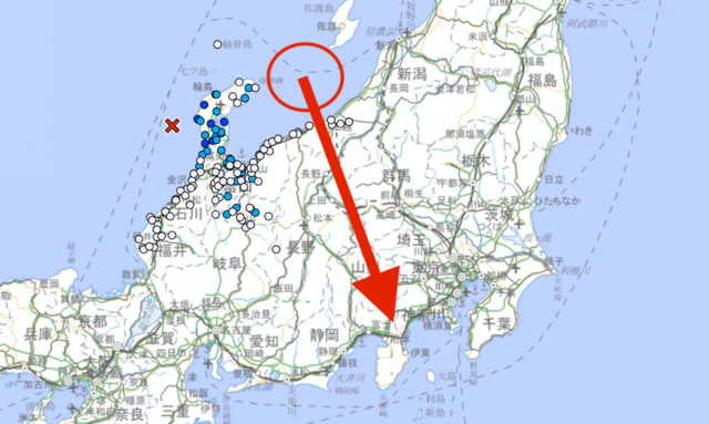 佐渡島と能登半島の間の海域を震源とする地震が、