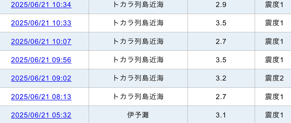 トカラ列島での地震が収束した数日後から、日本の本州は大きな地震に注意します。
