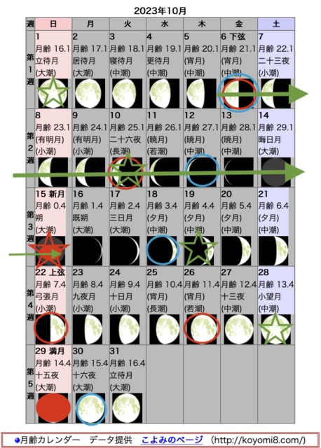 * 月齢カレンダー(http://koyomi8.com/moonage.html?cmd=202403231110T 月齢カレンダー データ引用 http://koyomi8.com/ より)