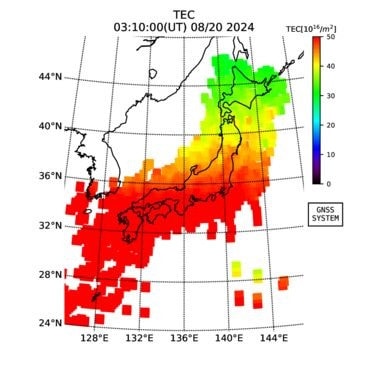 * GEONET リアルタイムGPS全電子数マップ (最新6時間、10分間隔)