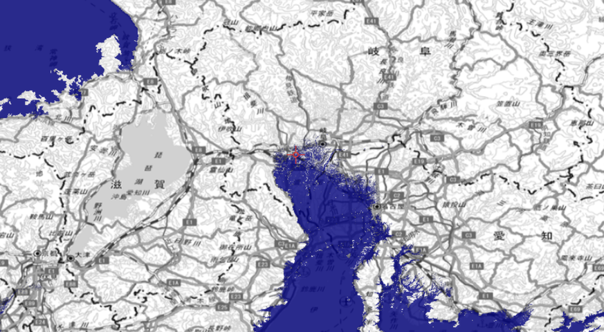 もし、名古屋市を10mを超える大津波が直撃すれば、標高的には岐阜県の手前まで到達する可能性に注意します。