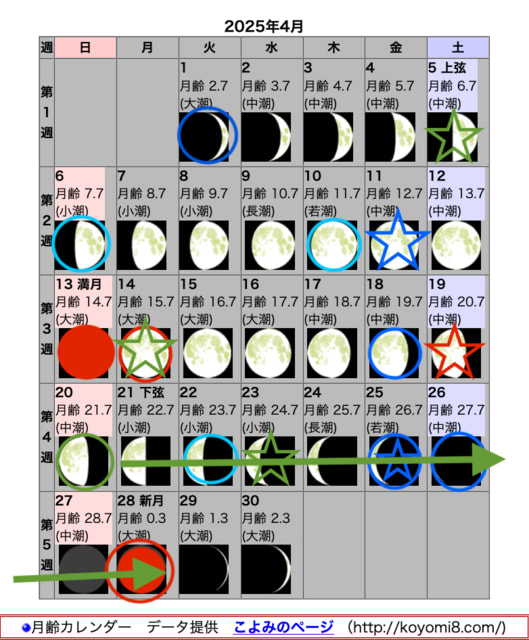 * 月齢カレンダー( https://koyomi8.com/moonage.html?cmd=202502231100S 月齢カレンダー データ引用 http://koyomi8.com/ より)