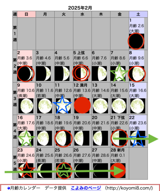 (カレンダーの意味は「2025年2月の自然観察日」を参照)